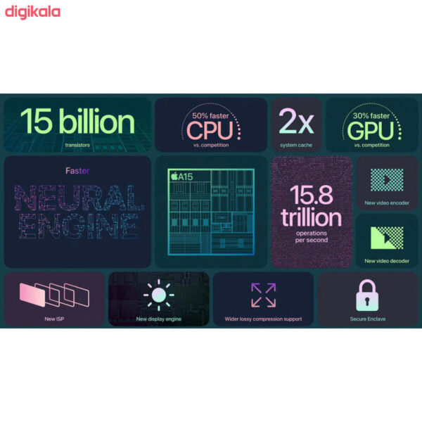 یکی دیگر از مشخصات بسیار قدرتمند در نظر گرفته شده برای این گوشی هوشمند، پردازنده آن است. آیفون 13 پرو همانند تمام اعضای این خانواده به پردازنده قدرتمند و اختصاصی A15 بایونیک مجهز شده است. دو هسته قدرتمندتر به همراه چهار هسته با صرفه انرژی کمتر، 6 هسته این پردازنده با معماری 5 نانومتری را تشکیل میدهند. به گفته اپل این پردازنده توانایی ارائه عملکرد سریعتر 50 درصدی به نسبت پردازنده A14 بایونیک را دارد. در بخش پردازنده گرافیکی یا همان GPU هم اپل این بار از پردازنده گرافیکی قدرتمند تر 5 هسته ای به نسبت پردازنده گرافیکی آیفون 12 پرو مکس بهره برده است. این پردازنده گرافیکی توانایی ارائه عملکرد سریعتر 30 درصدی به نسبت نسل قبلی را دارد. سیتم عامل پایه iOS 15 نیز این گوشی هوشمند را همراهی میکند. حتی در بخش میزان رم هم اپل دست به تغییر زده و این بار به جای رم 6 گیگابایتی، رم 8 گیگابایتی را برای این گوشی هوشمند در نظر گرفته است. تمام این عوامل خبر از آن میدهد که آیفون 13 پرو بدون شک می تواند در زمینه گیمپلی عملکرد بسیار عالی و قدرتمندی را از خود به نمایش بگذارد. پس با خیال راحت تمام بازی های سنگین همچون کالآفدیوتی موبایل و آسفالت 9 را بر روی این گوشی اجرا کنید و از گیم پلی بینظیر به لطف پردازنده فوق قدرتمند و صفحه نمایش با نرخ بروزرسانی 120 هرتز، لذت ببرید. البته لازم به ذکر است که این گوشی هوشمند در چهار مدل با رم 8 گیگابایتی بههمراه حافظه های داخلی 128/256/512 گیگابایتی روانه بازار شده است. اما نکته جالب توجه اینجاست که مدل جدید با حافظه داخلی 1 ترابایت و رم 8 گیگابایتی نیز برای اولین بار در تاریخ گوشی های هوشمند اول در دسترس است.